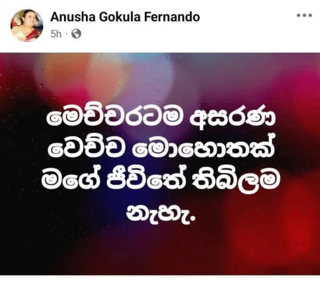 ඌව පළාත් ප්‍රධාන ලේකම්වරිය තබා ඇති ෆේස්බුක් සටහන