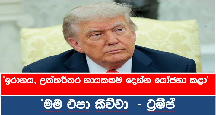 ‘ඉරානය, උත්තරීතර නායකකම දෙන්න යෝජනා කළා’ ‘මම එපා කිව්වා – ට්‍රම්ප්