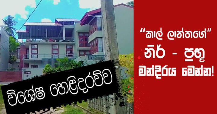 කඩුවෙල, වැලිවිට ජුසේ මාවත ප්රදේශයේ මෑතකදී ඉඳිකළ තෙමහල් මන්දිරයක් පිළිබඳ තොරතුරු අපගේ ගවේෂණ මාධ්යෙව්දියකු විසින් … Continue reading ‘‘කාල් ලාන්තගේ“ නිර් ප්රභූ මන්දිරය මෙන්න!