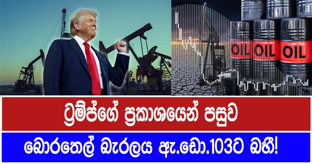 ට්‍රම්ප්ගේ ප්‍රකාශයෙන් පසුව බොරතෙල් බැරලය ඇ.ඩො.103ට බහී!