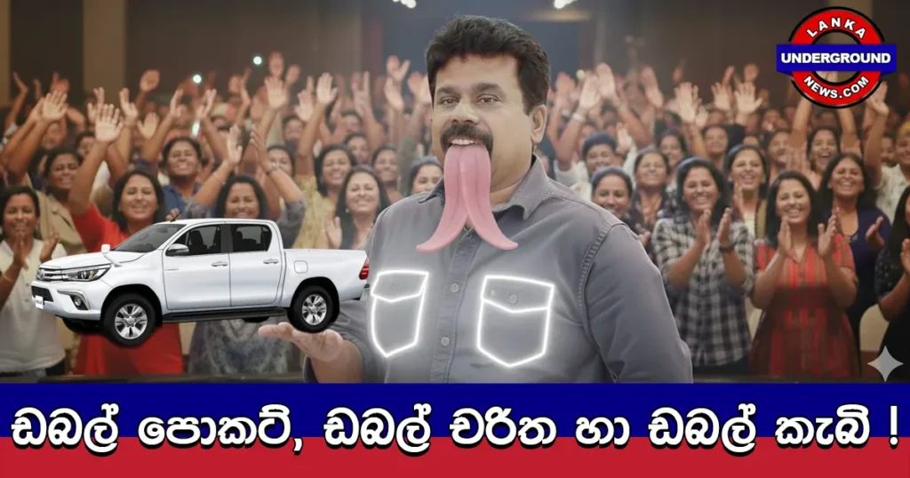 ඩී.පී. අනුර ජනාධිපතිගේ වාහන ගැන කී පෙර කතාවට අත්පොලසන් දුන් අයට ඔහු අළුත්ම අළුත් ඩබල් කැබ් ගෙන්වීමට රු. බිලියන 40 ක් වෙන් කරන විට ද අත්පොලසන් දිය හැකි ද? ඔහු “ඩබල් කැබ්” ගේන්නට මුදල් දෙන්නේ ඔහුගේ “ඩබල් පොකට්” වලින් එලියට ගෙන ද?
