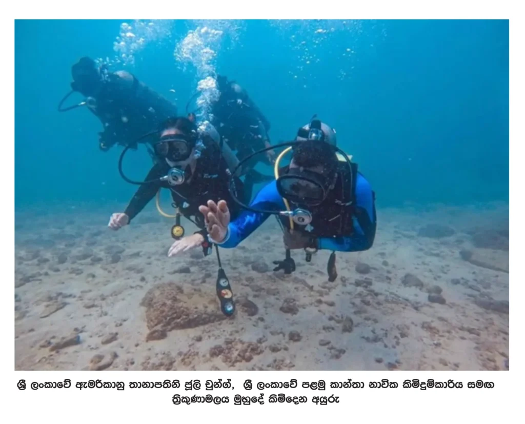 පසුගියදා, ශ්‍රී ලංකාවේ සිටින ඇමෙරිකා එක්සත් ජනපද තානාපතිනී ජුලී චුන්ග්, ත්‍රිකුණාමලයේ සංචාරයක නිරත වූ අතර ශ්‍රී ලංකාවේ පළමු නාවික කිමිදුම්කාරිය සමග ත්‍රිකුණාමලය වෙරළට ඔබ්බෙන් වූ මුහුදු තීරයේ කිමිදීමට ද කටයුතු කළා ය. එය හුදු සංචාරයක් නොව, ත්‍රිකුණාමලය කෙරෙහි ඇති උනන්දුව දේශපාලනිකව පෙන්වාලීමක් බව බොහෝ දෙනෙකුගේ මතය වී තිබේ.