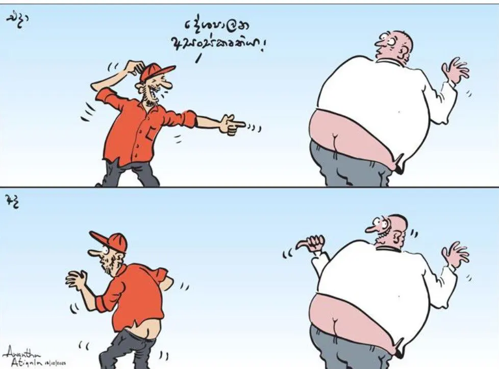 දවසේ කාටූනය දවසේ කාටුනය 1 min read 4 weeks ago Lanka Underground News 40 SHARES Share on FacebookPost on XFollow usSavePlease follow and like us: Post Views: 7,128 Post navigation Previous මාලිමාව පාර්ලිමේන්තු මන්ත්රීගේ ගංජා හේනක් වටලයි! මල් පැල නෙවෙයි, ගංජා පැල!Next Gota go home පිටුපස ගේම!