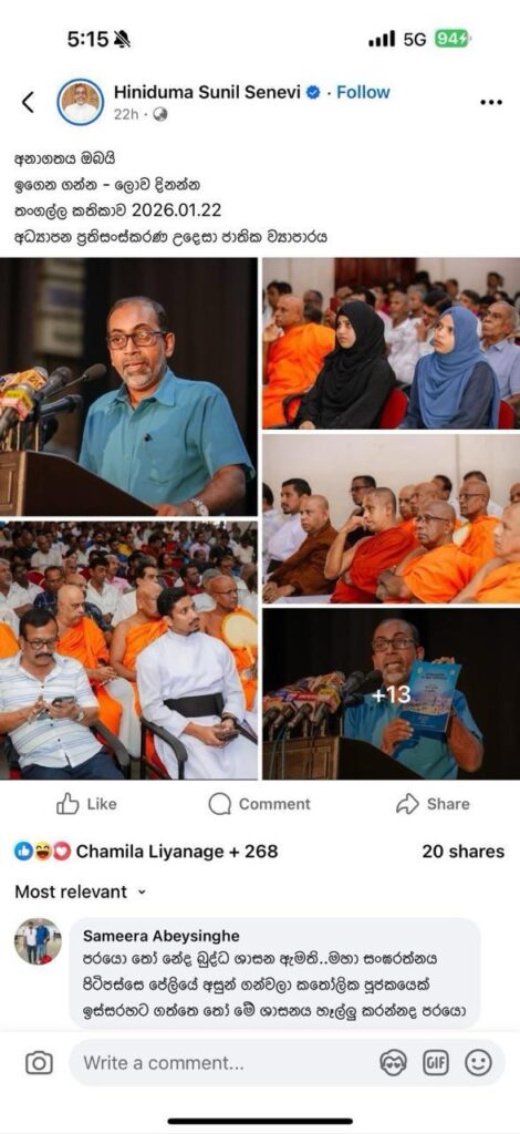 ඡායාරූප උපුටාගත් බුද්ධශාසන ඇමතිවරයාගේ මුහුණු පොත;