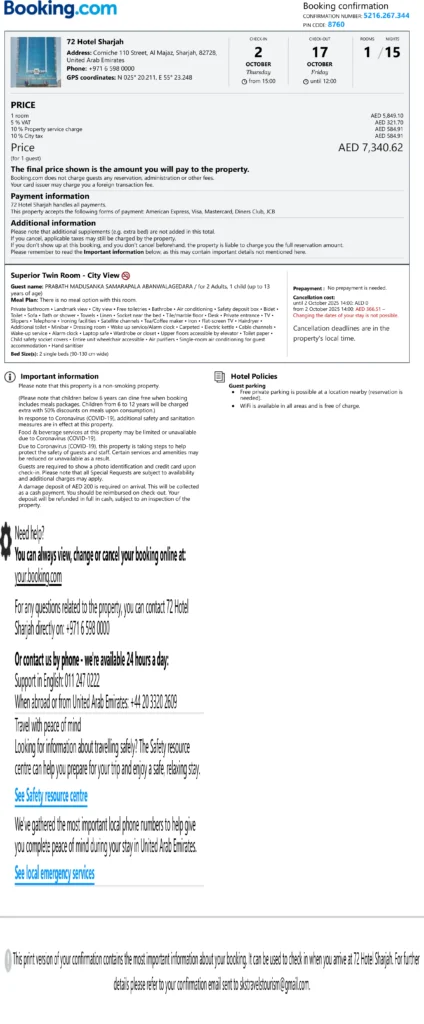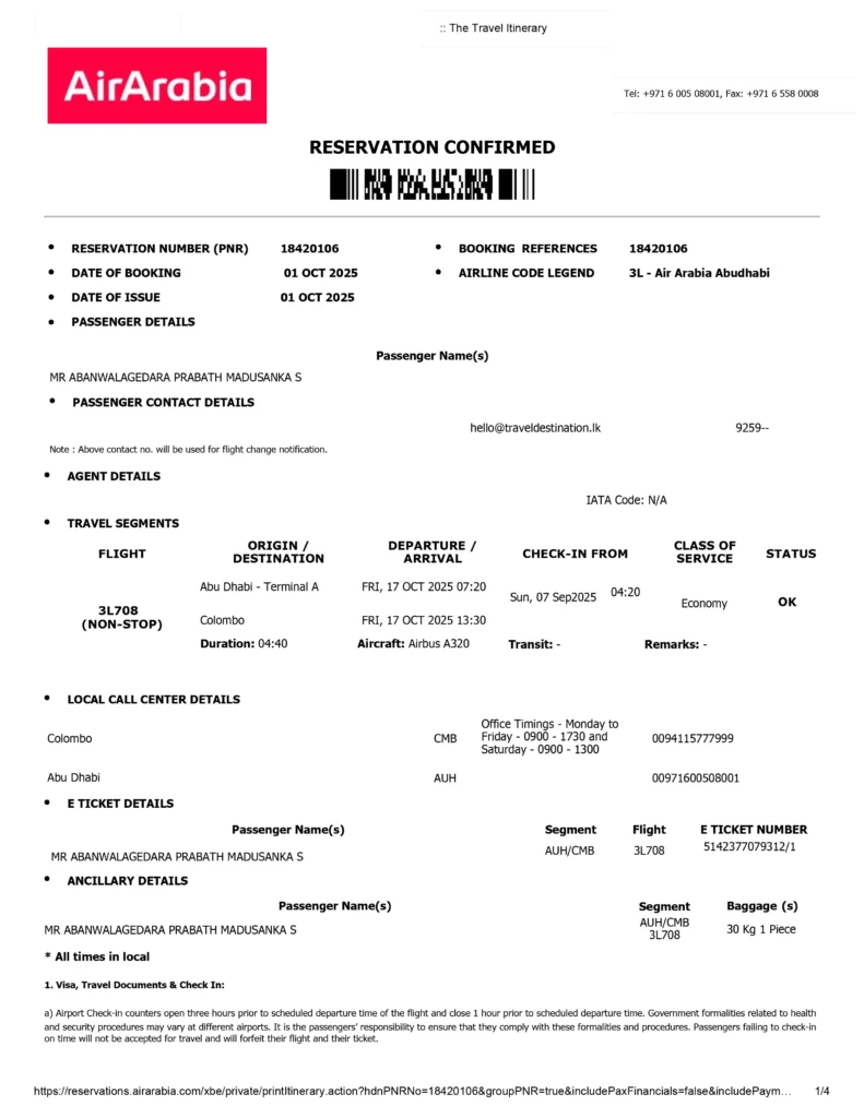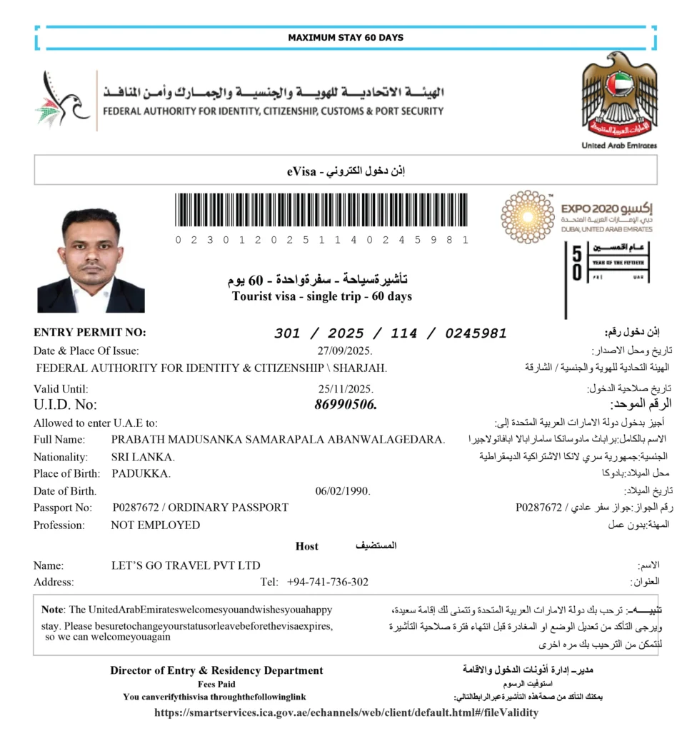 ඒ අනුව, P 0287672 ගුවන් ගමන් බලපත්‍රෙයන් 2025.10.02 වැනි දින සවස 06:55ට ගුවන්ගත වූ Air Arabia ගුවන් සමාගමට අයත් 3L 708 අංකය දරණ ගුවන් යානයෙන් පැට්ටා ඩුබායි බලා පිටත්ව ගොස් තිබේ.