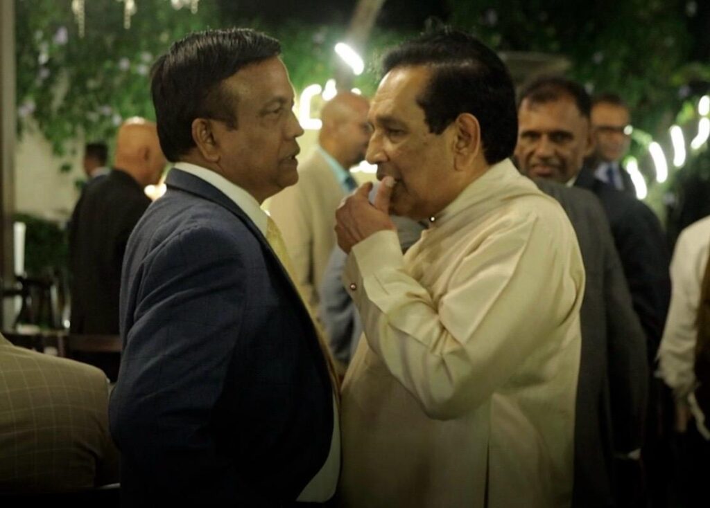 මේ දෙදෙනා මෙලෙස බඩට බඩ තබාගෙන සතුටු සාමීචියේ නිරත වන්නේ රාත්රී සාදයක දීය. ඉතා කුළුපඟ මිතුරන් දෙදෙනකුවත් මෙලෙස බඩට බඩ තබාගෙන තකට තකේ කතා බහ කරනු අප නම් දැක නැත. මේ අන්දමට වෙනත් දේශපාලන පක්ෂ දෙකක දෙදෙනකු කතා බහ කළේ නම් ජ.වි.පෙ. සමාජ සමාජ මාධ්ය ක්රියාකාරිකයෝ එය හුවා දක්වන්නේ එක වර්ගයේ කුරුල්ලෝ එක අත්තේ ලැගීමක් ලෙසය. නොඑසේනම්, හොරු, හොරු සමඟ හෙළුවෙන් කියා ය.