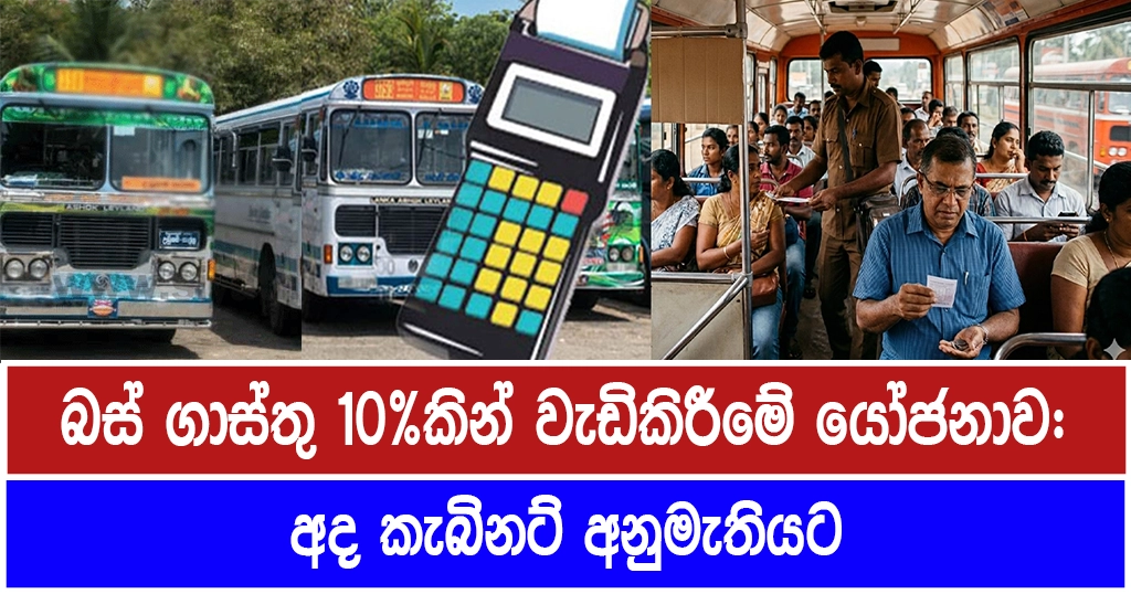 ඒ අනුව අද දිනයේදි මෙම නව බස් ගාස්තුව සඳහා කැබිනට් මණ්ඩලයට ඉදිරිපත් කර අනුමැතිය ගැනීමටද නියමිතව තිබේ.