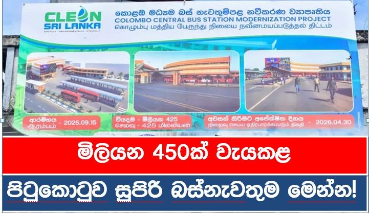 රුපියල් මිලියන 450ක් වියදම් කර කොළඹ ප්රධාන බස් නැවතුම්පොළ ප්රතිසංස්කරණය කොට ජනතාවට පැවරීමට කටයුතු කර තිබේ.