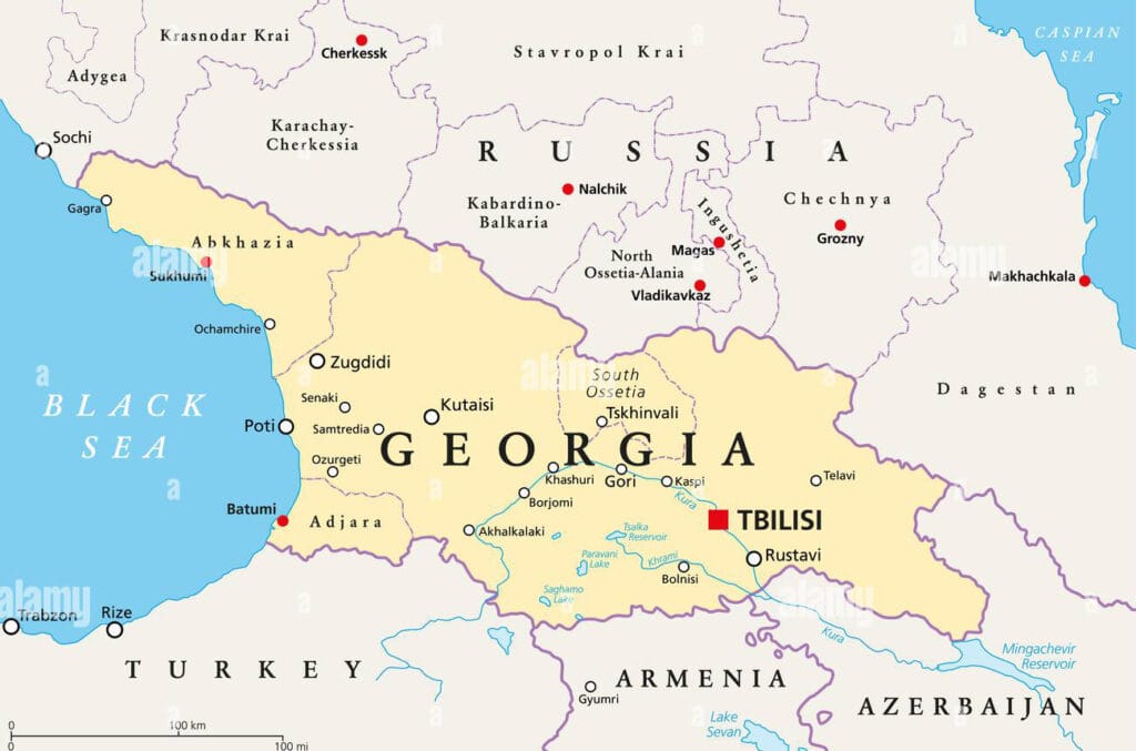 කළු මුහුද සහ කැස්පියන් මුහුද අතර තිබෙන කුඩා රටක් වන ජෝර්ජියාව රුසියාව මග හැර, එම මුහුදු දෙක අතර ගමන් කිරීමේදී අත්යාවශ්ය වැදගත්කමකින් යුත් රාජ්යයකි. මෙය ඓතිහාසිකව වැඩි කලක් රුසියාව සමඟ එක්ව පැවැතී තිබේ.