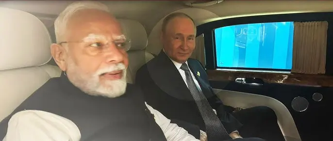 නරේන්ද්‍ර මෝදි සහ ව්ලැඩ්මීර් පුටින් ෂැන්හයි සහයෝගිතා සමුළුව අතරතුර