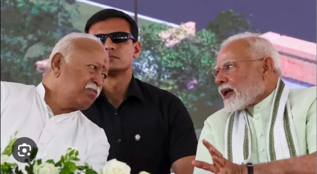 R.S.S. සංවිධානයේ ප්‍රධානී මොහාන් භග්වාට් සහ නරේන්ද්‍ර මෝදි අගමැතිවරයා