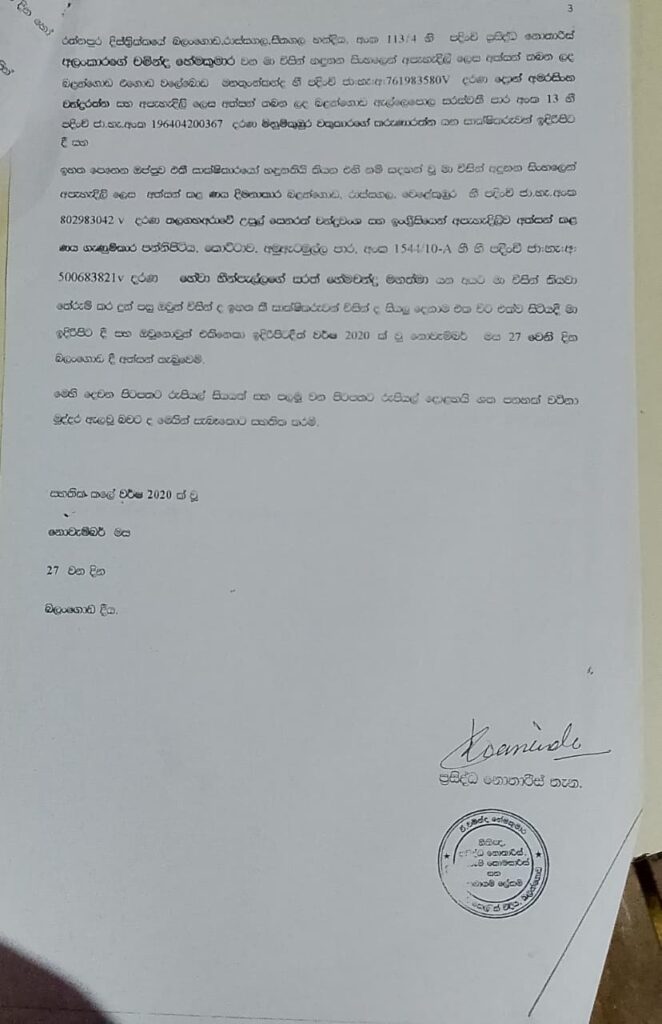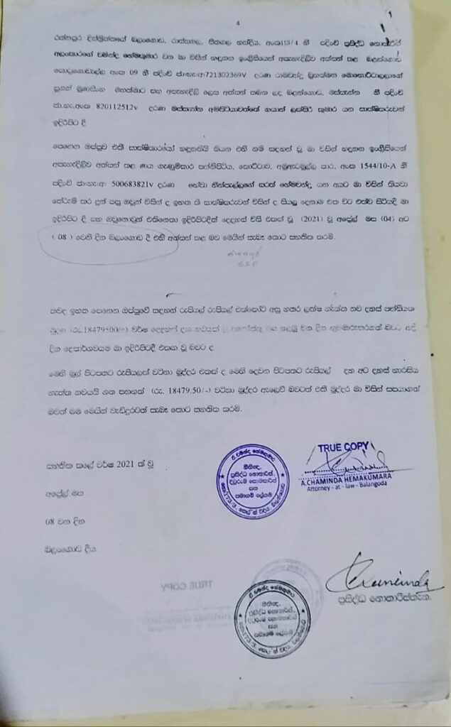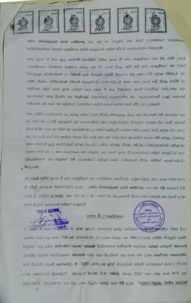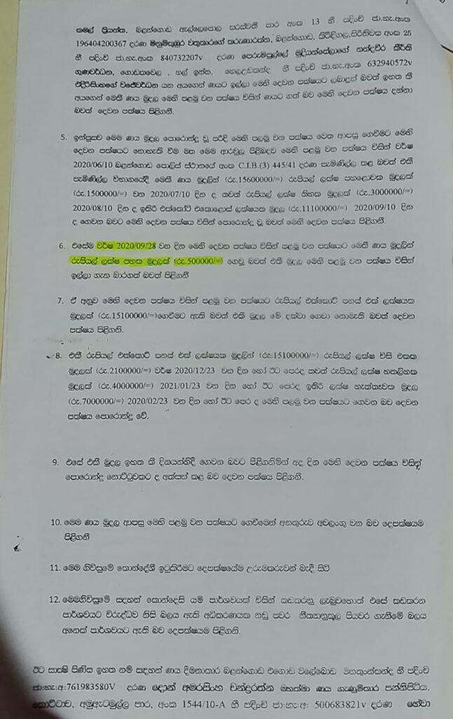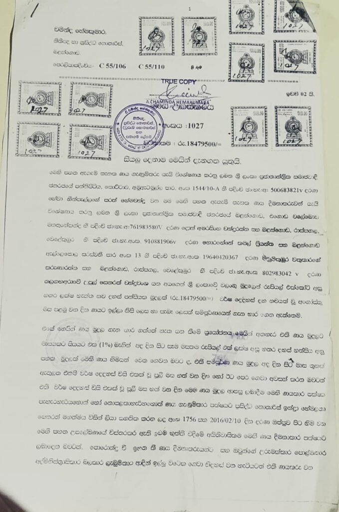 එම වංචාවට අදාල සාක්ෂි පහතින්