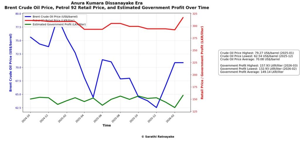 • රජය ලීටරයකින් උපරිම ලාභය ලැබූ අවස්ථාව = Rs. 157.93 (2026-March)