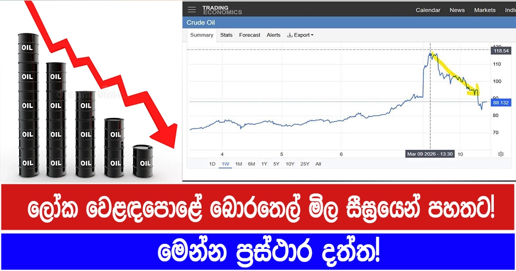 ලෝක වෙළඳපොළේ බොරතෙල් මිල සීඝ්‍රයෙන් පහතට! මෙන්න ප්‍රස්ථාර දත්ත!