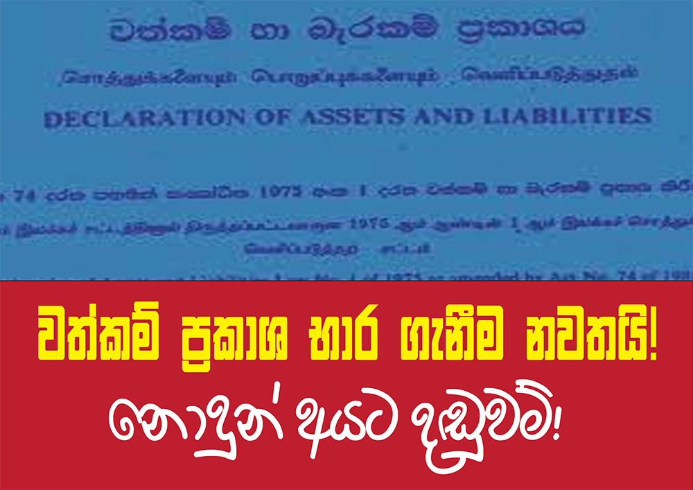 වත්කම් ප්රකාශ භාර ගැනීම නවතයි! නොදුන් අයට දඬුවම්!