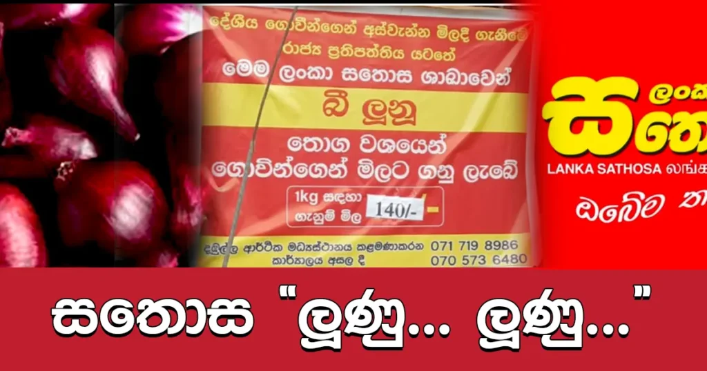 සතොස විසින් ලොකු ළූණු මිලදී ගැනීම සඳහා මෙලෙස නිර්නායක පනවද්දී අර්ථික මධ්‍යස්ථානයේ ලොකු ළූණු කිලෝවක ගැනුම් මිල රුපියල් 90ක් වශයෙන් සටහන්ව තිබේ.