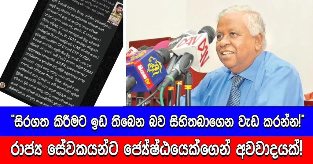 ”සිරගත කිරීමට ඉඩ තිබෙන බව සිහිතබාගෙන වැඩ කරන්න!” රාජ්ය සේවකයන්ට ජ්යේෂ්ඨයෙක්ගෙන් අවවාදයක්