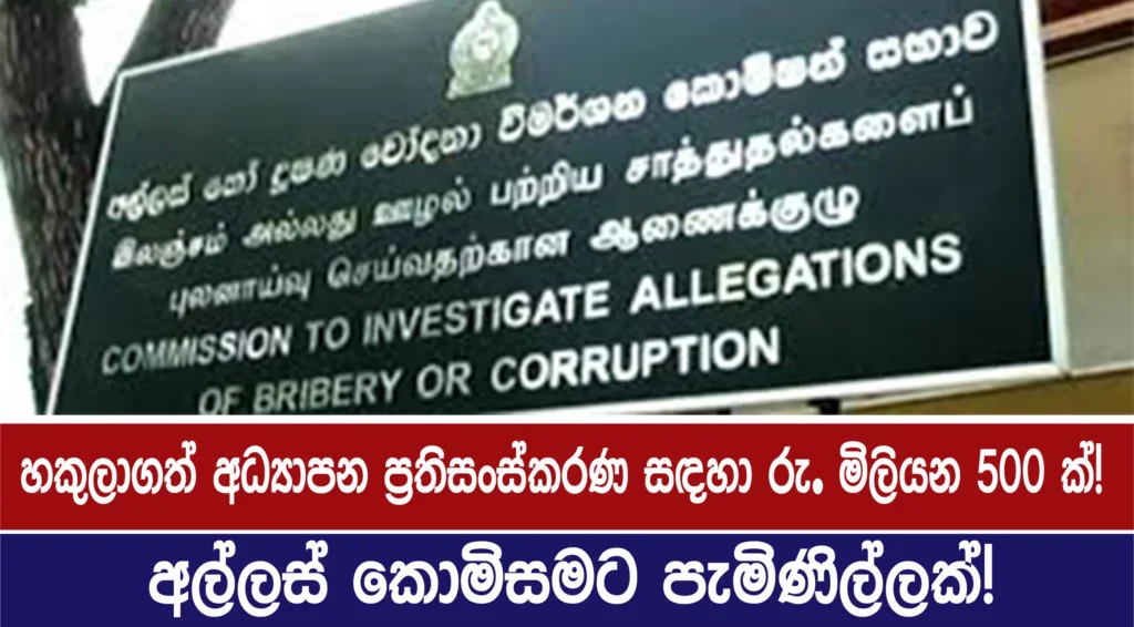 හකුලාගත් අධ්යාපන ප්රතිසංස්කරණ සඳහා රුපියල් මිලියන 500 ක්! අල්ලස් කොමිසමට පැමිණිල්ලක්!