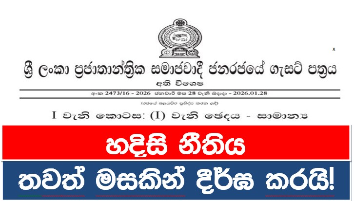 ඊට අදාළ ගැසට් නිවේදනය ද ප්රකාශට පත් කර තිබේ.