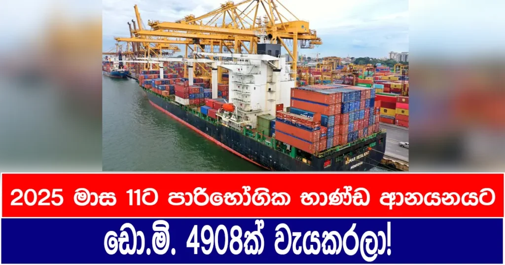 2025 මාස 11ට පාරිභෝගික භාණ්ඩ ආනයනයට ඩො.මි. 4908ක් වැයකරලා!