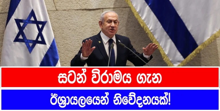 ඉරානය සමග සටන් විරාමයකට සහයෝගය පළකරමින්, ඊශ්රායල අග්රාමාත්ය කාර්යාලයෙන් නිල නිවේදනයක් නිකුත් කර ඇති බව විදේශ මාධ්ය වාර්තා කරයි ....