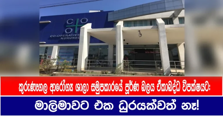 කුරුණෑගල ආරෝග්‍ය ශාලා සමුපකාර සමිතියේ සභාපති ඇතුළු සමස්ත අධ්‍යක්ෂ මණ්ඩලය ශ්‍රී ලංකා පොදුජන පෙරමුණ ප්‍රමුඛ ඒකාබද්ධ විපක්ෂයෙන් තේරීපත්ව තිබෙනවා. ජාතික...