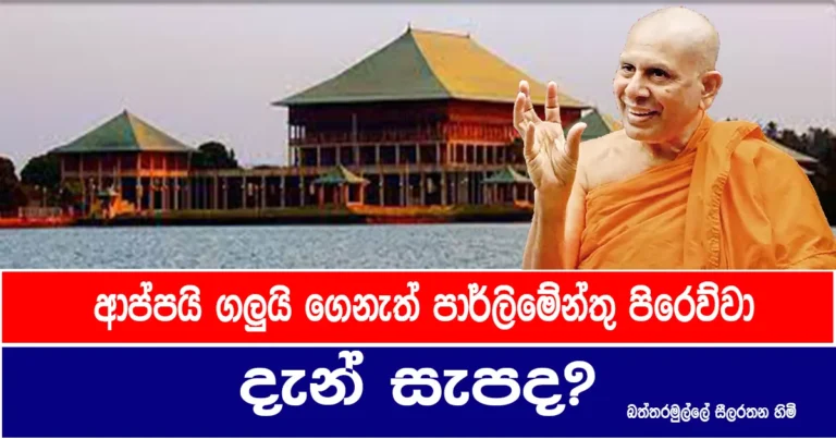 ශ්රී ලංකා පාර්ලිමේන්තුවට ආප්පයි ගලුයි කෝපියි තේයි සියල්ල රොත්ත පිටින් එවා ජනතාව විශාල සේවයක් කර ඇතැයි ජනසෙත පෙරමුණේ නායක බත්තරමුල්ලේ...