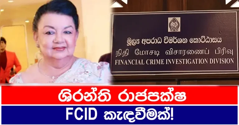 හිටපු ජනාධිපති මහින්ද රාජපක්ෂ මහතාගේ බිරිඳවන ශිරන්ති වික්රමසිංහ මහත්මියට පොලිස් මුල්ය අපරාධ විමර්ශන කොට්ඨාසයට කැඳවීමක් කර ඇතැයි වාර්තා වෙයි. මහින්ද...