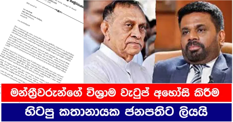පාර්ලිමේන්තු මන්ත්රීවරුන්ගේ විශ්රාම වැටුප් අහෝසි කිරීම සම්බන්ධව හිටපු කථානායකවරයෙකු වූ කරූ ජයසූරිය මහතා විසින් ජනාධිපති අනුර කුමාර දිසානායක මහතා වෙත...