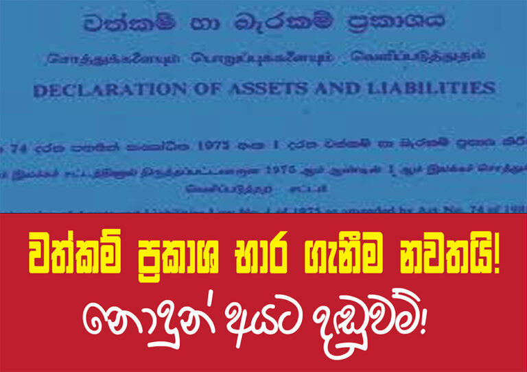 ආණ්ඩුවේ මැති - ඇමතිවරු ලබා දී තිබෙන වත්කම් ප්රකාශ හි පවතින බරපතළ අඩු පාඩු හා දුර්වලතා නිවැරදි කර ගැනීමට දින...
