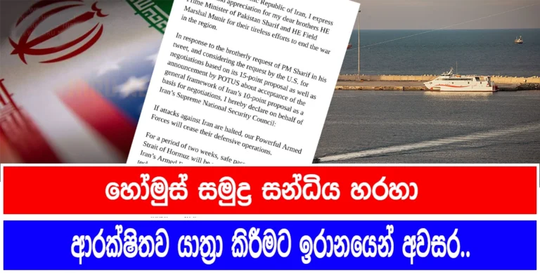 ඉදිරි සති දෙකක කාලය සඳහා හෝමුස් සමුද්ර සන්ධිය (Strait of Hormuz) හරහා නෞකාවලට ආරක්ෂිතව ගමන් කිරීමට අවස්ථාව ලබා දෙන බව...