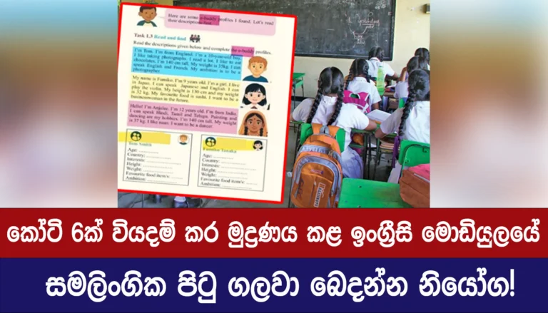 ජාතික අධ්‍යාපන ආයතනය මඟින් සකස්කර මුද්‍රණය කෙරුණු හය වැනි ශ්‍රේණියේ ඉංග්‍රීසි විෂයට අදාළ මොඩියුලයේ මහත් ආන්දෝලනයට තුඩුදුන් සමලිංගික වෙබ් අඩවියට...