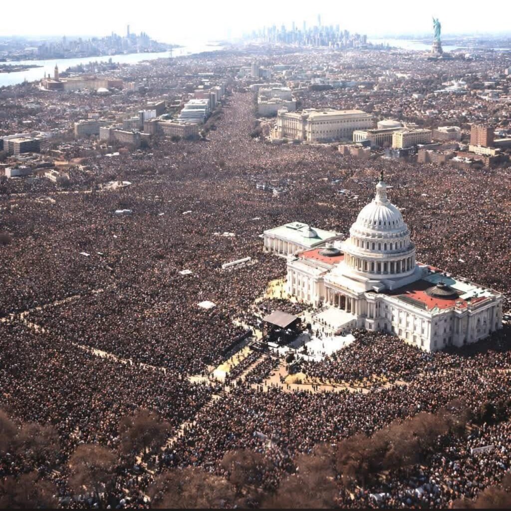 ඉරානයේ සිදු නොවූ දේ නම් දැන් ඇමරිකා එක්සත් ජනපදයේ සිදුවන්නේ ය. මේ ඡායාරූපය කියා පාන්නේ ඒ බව ය. මාධ්‍ය වාර්තාවන්ට අනුව මිලියන 10කට වැඩි ජනතාවක් ඇමරිකා එක්සත් ජනපදය පුරා නගර රැසක එකම සටන් පාඨය හඬ නගා විරෝධතාවන් හි නිරතව ඇත.