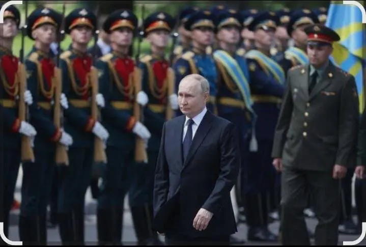 රුසියාවේ ව්ලැද්මීර් පුටින් හමුදා ආචාරය පිළිගන්නා අවස්ථාවක්